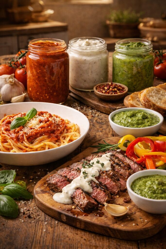 Nuestras salsas son ideales para acompañar pastas, carnes, aperitivos o como deliciosos dips, aportando un toque gourmet y auténtico a cada comida.